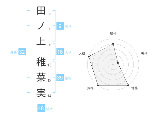 田ノ上 稚菜実さんを姓名の画数から五運を鑑定