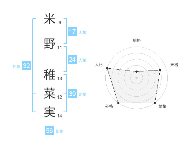 米野 稚菜実さんを姓名の画数から五運を鑑定