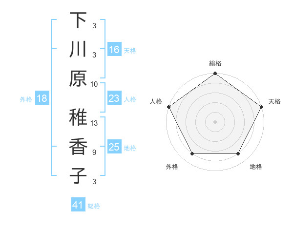 下川原 稚香子さんの総格は41画の5点!
