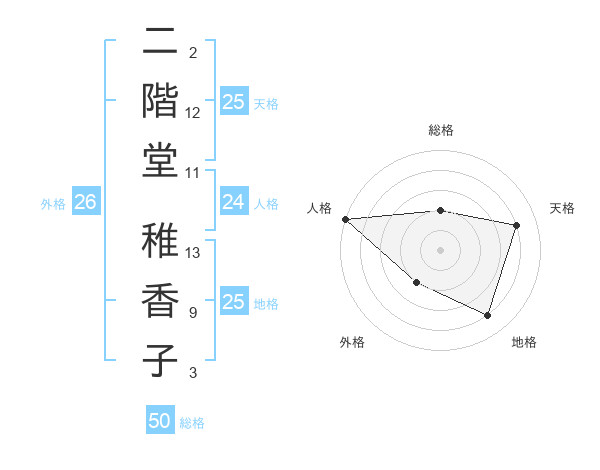 二階堂 稚香子さんを姓名の画数から五運を鑑定