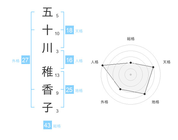 五十川 稚香子さんの総格は43画の2点!