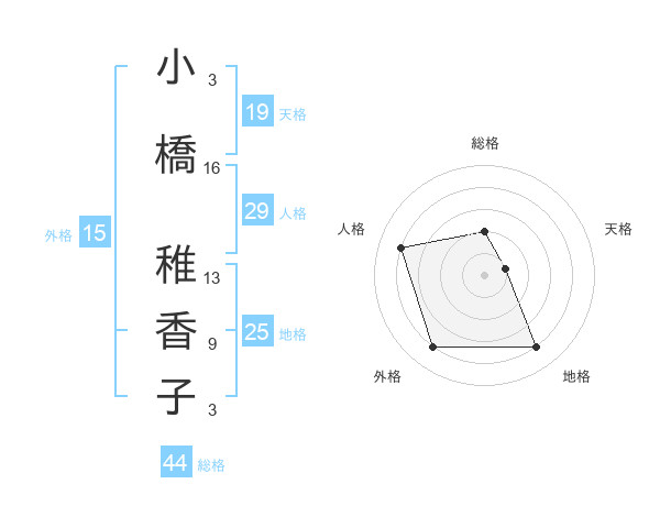 小橋 稚香子さんを姓名の画数から五運を鑑定