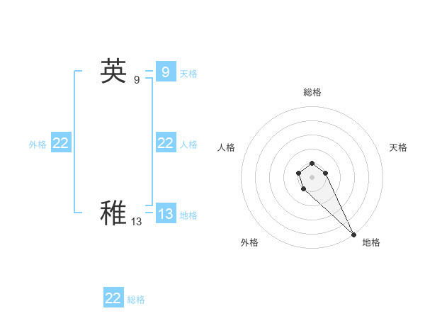 英 稚さんの総格は22画の1点!