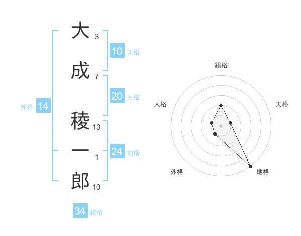 大成 稜一郎さんを姓名の画数から五運を鑑定