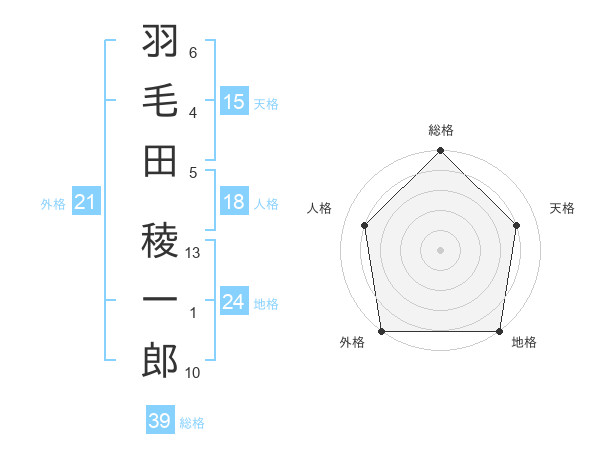 羽毛田 稜一郎さんを姓名の画数から五運を鑑定