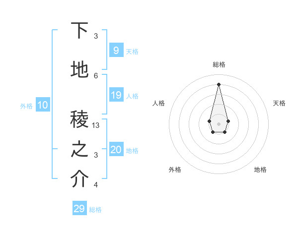 下地 稜之介さんを姓名の画数から五運を鑑定