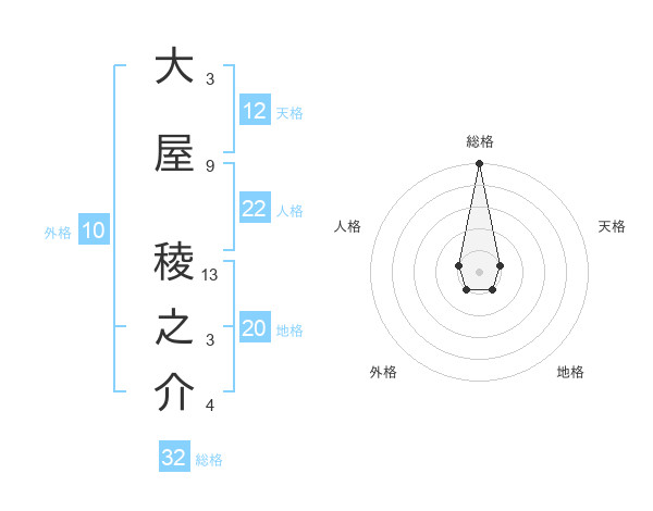 大屋 稜之介さんを姓名の画数から五運を鑑定