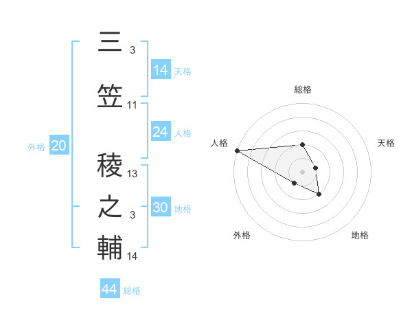 三笠 稜之輔さんを姓名の画数から五運を鑑定