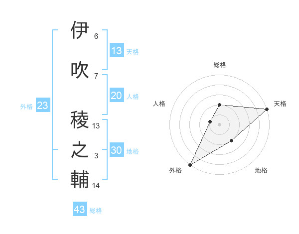 伊吹 稜之輔さんの総格は43画の2点!