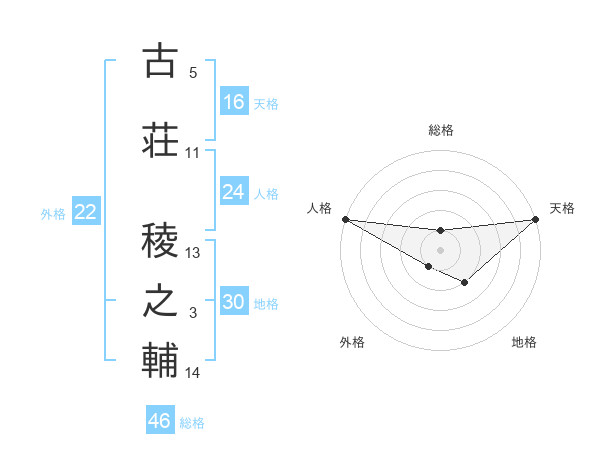 古荘 稜之輔さんを姓名の画数から五運を鑑定