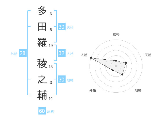 多田羅 稜之輔さんを姓名の画数から五運を鑑定