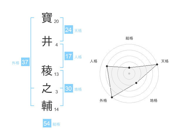 寶井 稜之輔さんを姓名の画数から五運を鑑定