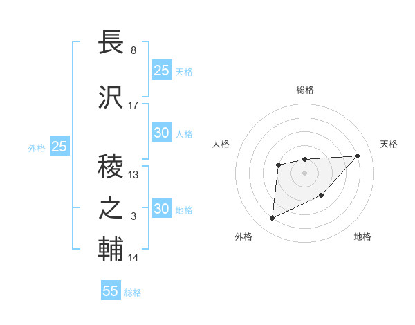 長沢 稜之輔さんの天格は25画の4点!