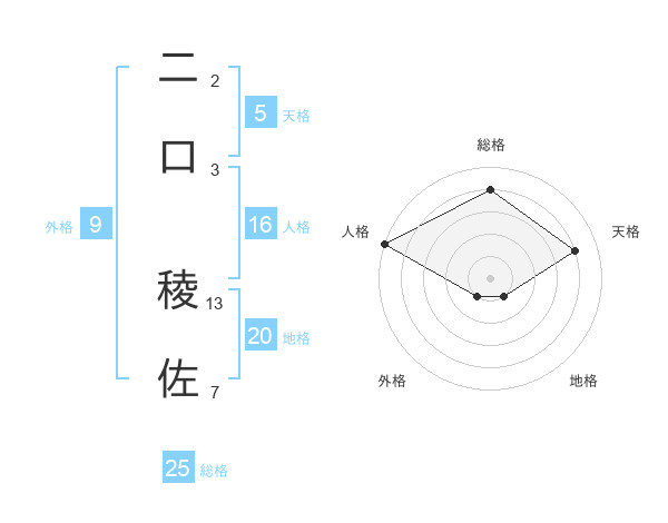 二口 稜佐さんの天格は5画の4点!