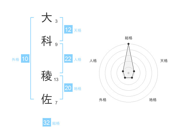 大科 稜佐さんを姓名の画数から五運を鑑定