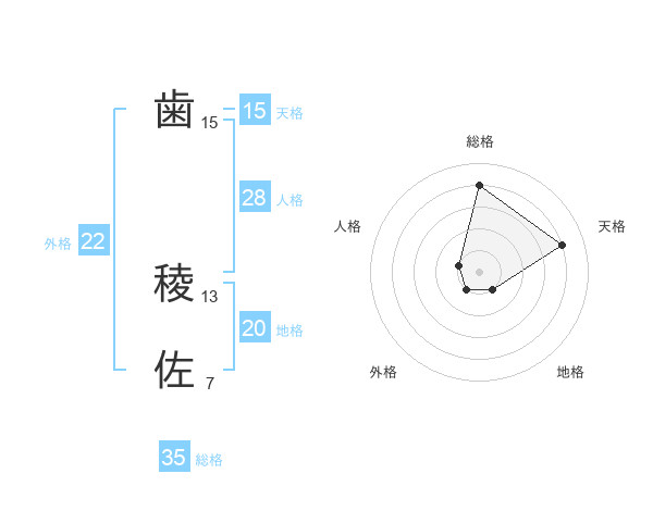 歯 稜佐さんの総格は35画の4点!
