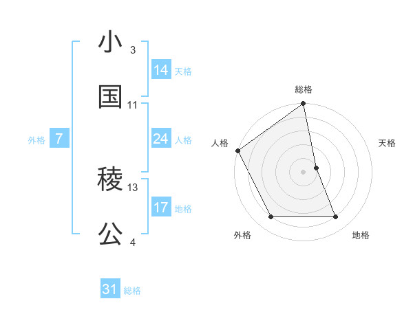 小国 稜公さんの総格は31画の5点!
