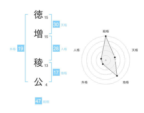 徳増 稜公さんを姓名の画数から五運を鑑定
