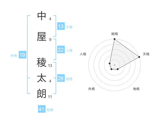 中屋 稜太朗さんを姓名の画数から五運を鑑定