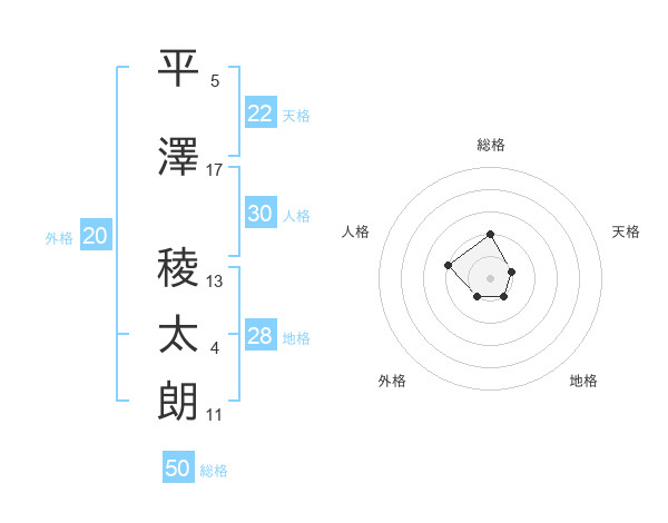 平澤 稜太朗さんの総格は50画の2点!