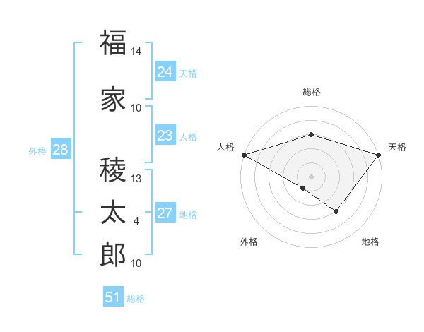 福家 稜太郎さんを姓名の画数から五運を鑑定