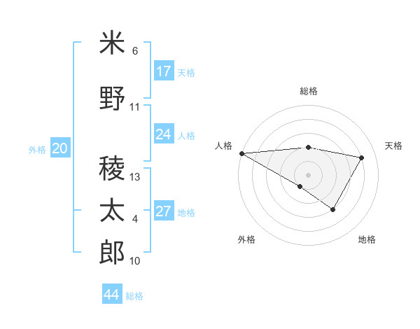 米野 稜太郎さんを姓名の画数から五運を鑑定