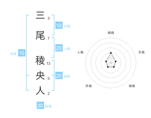 三尾 稜央人さんの総格は30画の2点!