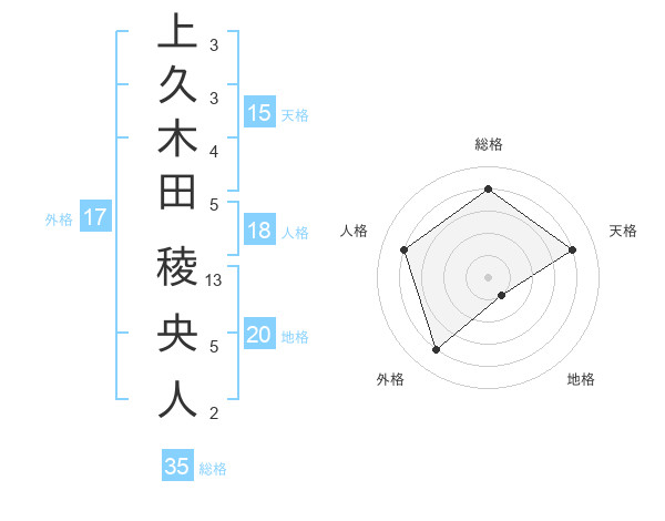 上久木田 稜央人さんを姓名の画数から五運を鑑定