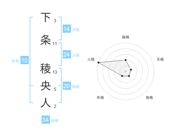 下条 稜央人さんの総格は34画の2点!