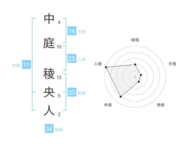 中庭 稜央人さんを姓名の画数から五運を鑑定