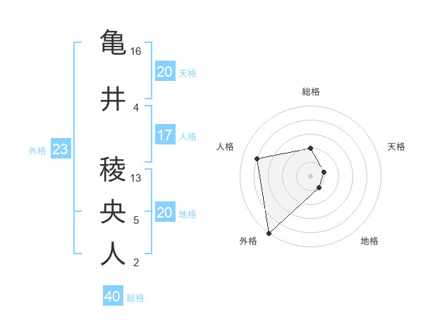 亀井 稜央人さんを姓名の画数から五運を鑑定