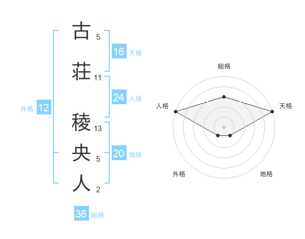 古荘 稜央人さんを姓名の画数から五運を鑑定