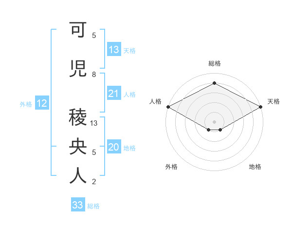 可児 稜央人さんを姓名の画数から五運を鑑定