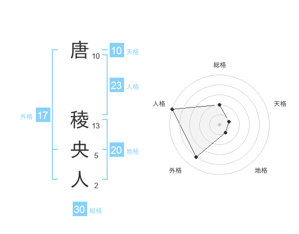 唐 稜央人さんを姓名の画数から五運を鑑定
