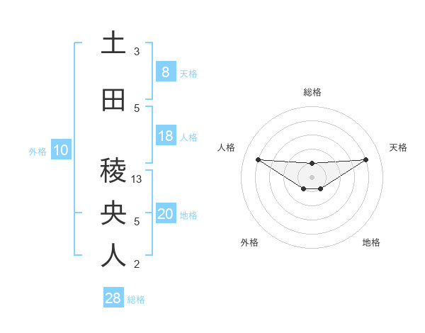 土田 稜央人さんの総格は28画の1点!