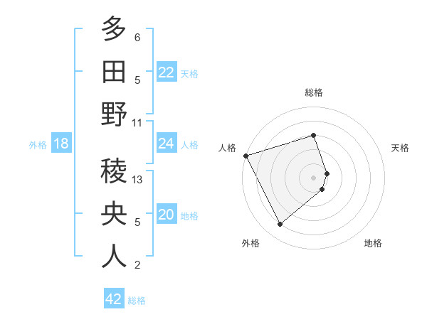 多田野 稜央人さんを姓名の画数から五運を鑑定