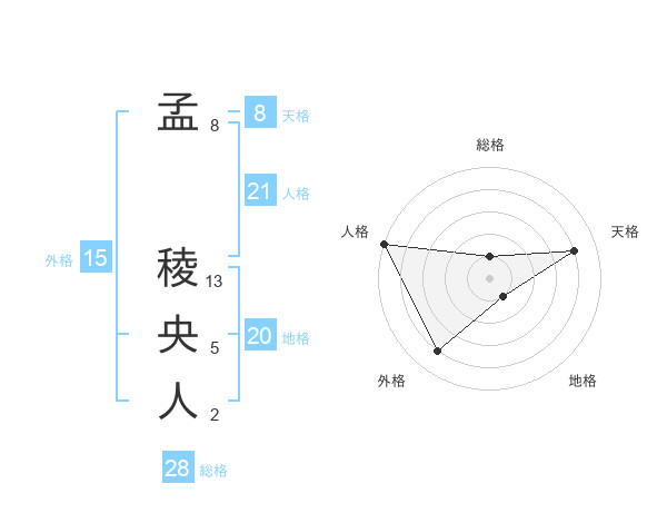 孟 稜央人さんを姓名の画数から五運を鑑定