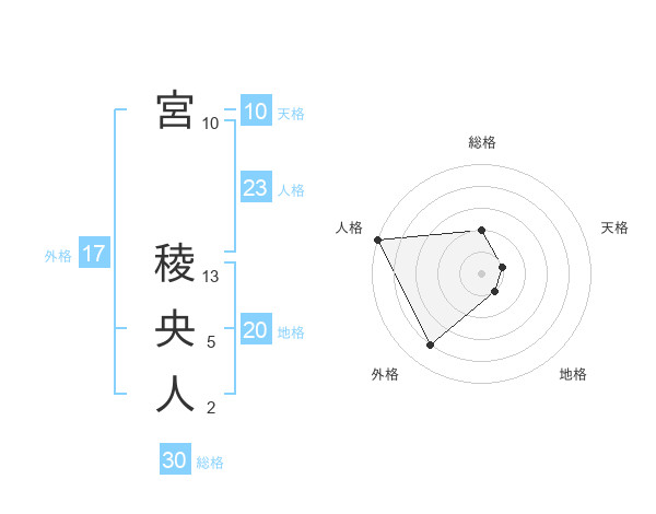 宮 稜央人さんを姓名の画数から五運を鑑定