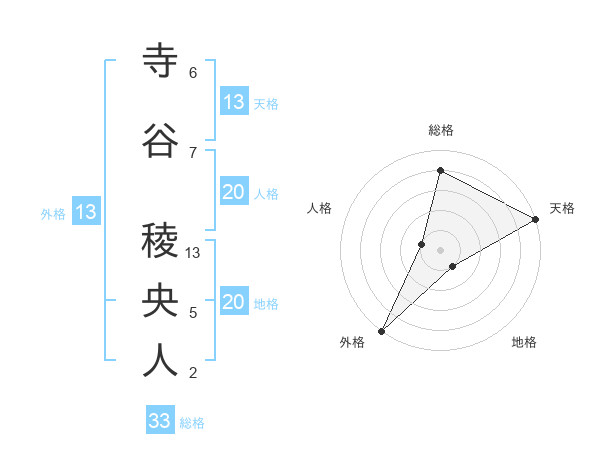 寺谷 稜央人さんを姓名の画数から五運を鑑定