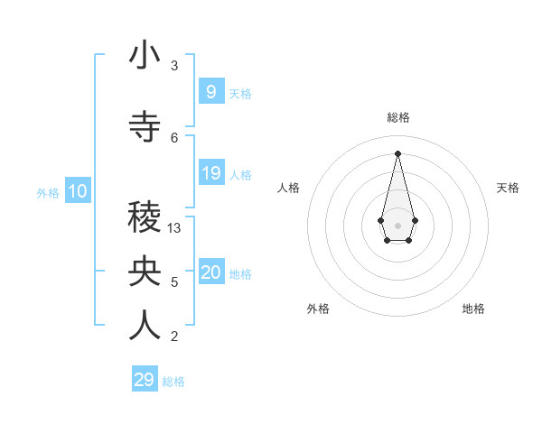 小寺 稜央人さんの総格は29画の4点!
