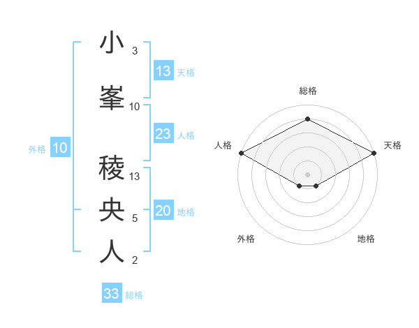 小峯 稜央人さんを姓名の画数から五運を鑑定