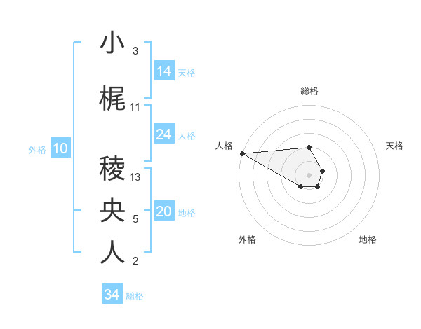 小梶 稜央人さんを姓名の画数から五運を鑑定