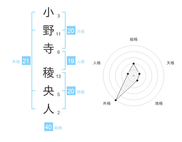 小野寺 稜央人さんの外格は21画の5点!