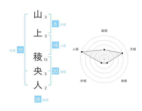 山上 稜央人さんを姓名の画数から五運を鑑定