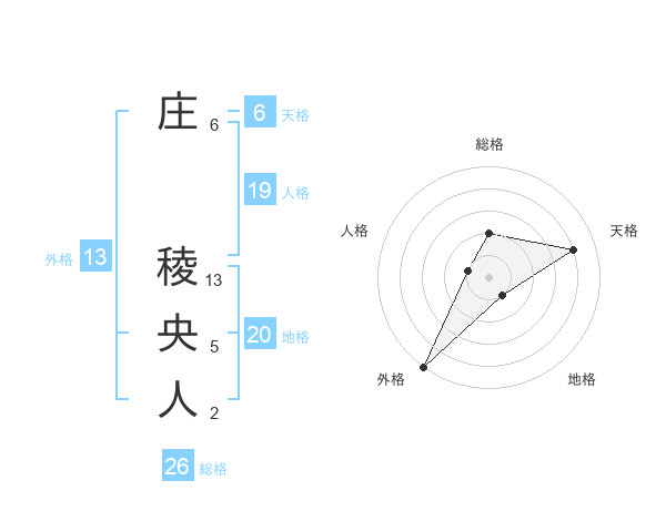 庄 稜央人さんの外格は13画の5点!