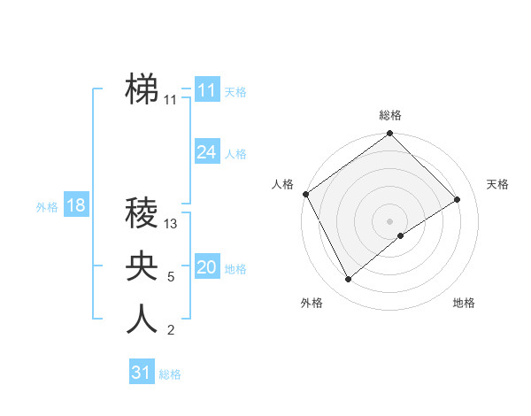 梯 稜央人さんの総格は31画の5点!