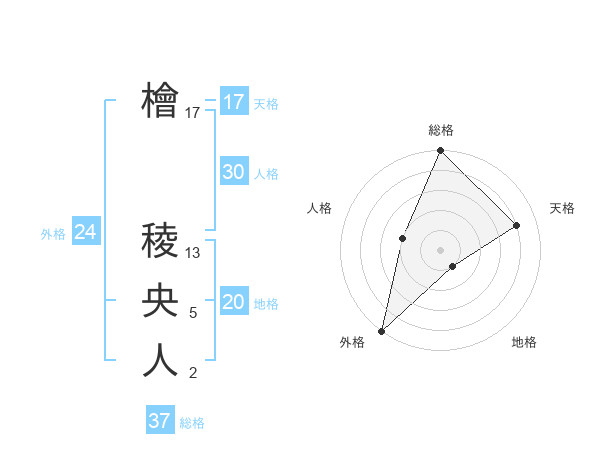 檜 稜央人さんを姓名の画数から五運を鑑定