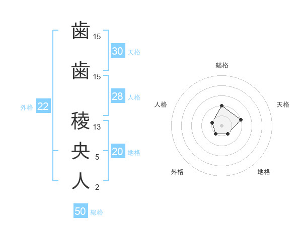 歯歯 稜央人さんを姓名の画数から五運を鑑定