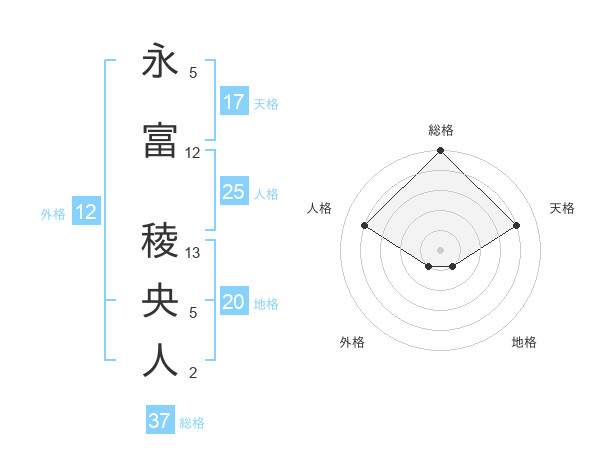 永富 稜央人さんの総格は37画の5点!