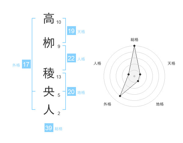 高栁 稜央人さんの総格は39画の5点!